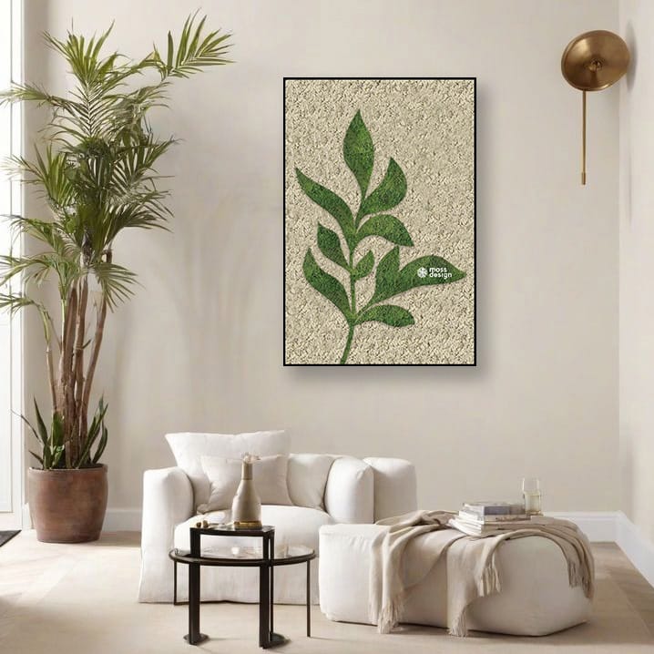 • Ak sa Vám páčia interiéry zariadené v prírodnom štýle s dôrazom na prírodné materiály ako je drevo, ratan, rôzne ľanové textílie v neutrálnych tónoch, machový obraz VERDE krásne osvieži a podčiarkne prirodzený charakter takéhoto priestoru.
